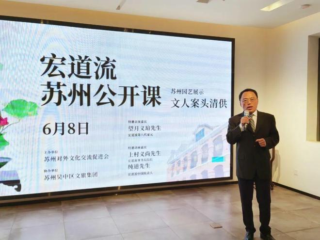苏州对外文化交流促进会理事长陆玉方在活动开场致辞中表示:“文化因交流而精彩,文明因互鉴而丰富。苏州对外文化交流促进会一直致力于推动文化和文明的交流,希望通过这次宏道流的苏州公开课,能够进一步加强双方之间的友谊,促进艺术交流与提升,让中日文化交流各美其美,美人之美,美美与共!”