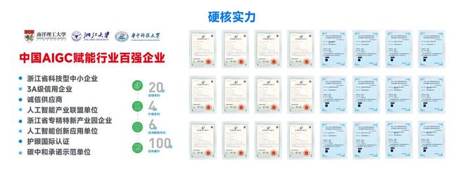 智惠家AIGC隶属于杭州元码智能科技有限公司,经过几年的发展,公司已在行业内积累了不俗的荣誉。公司获评中国 AIGC 赋能行业百强企业,浙江省科技型中小企业、人工智能产业联盟成员单位。公司通过了3A级信用企业、诚信供应商认证,浙江大学绿洲长三角人工智能创新应用,并且正在积极申报雏鹰企业,浙江省专精特新企业。公司更是在碳中和承诺示范方面走在前列,彰显了企业的社会责任感。
